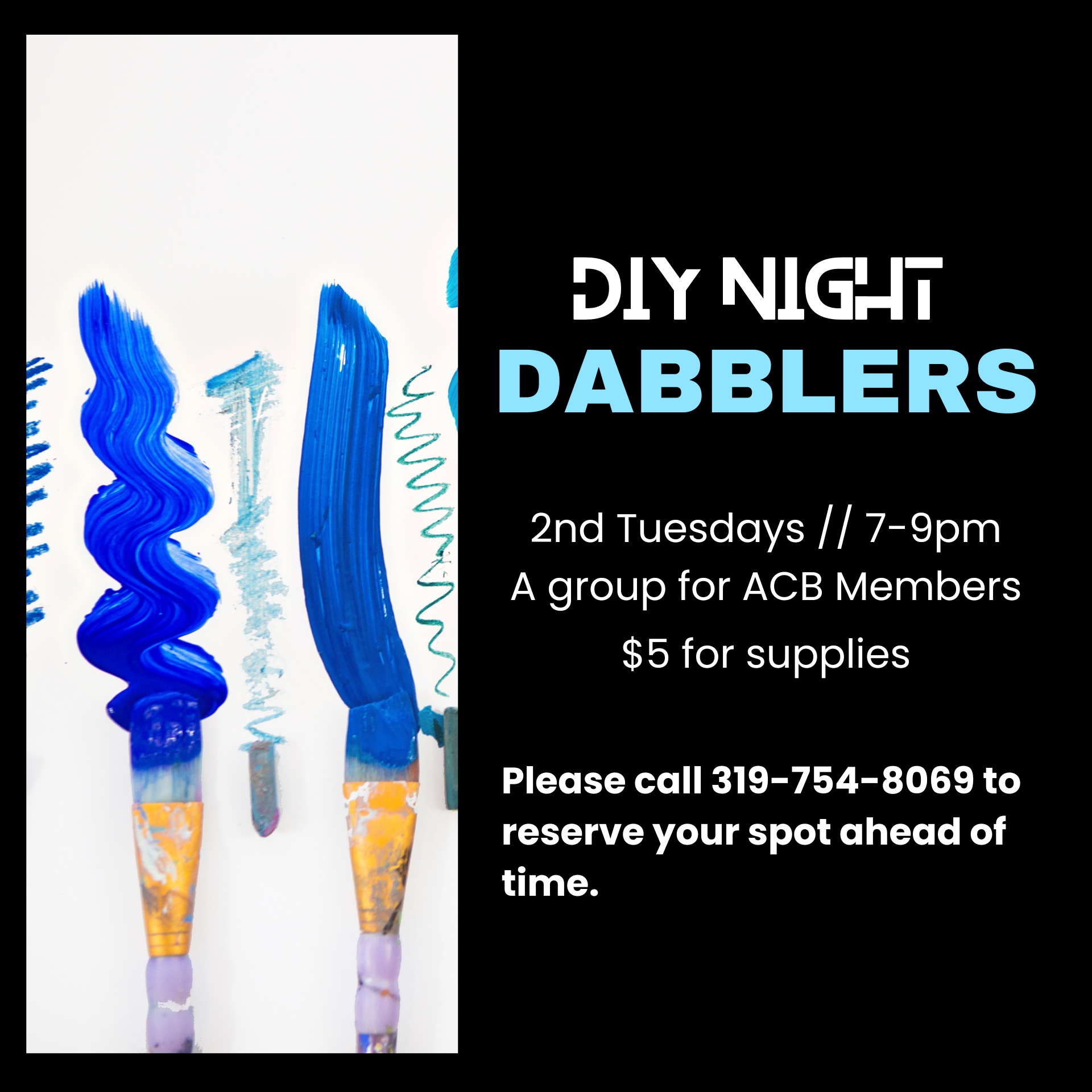 📞 RSVP: Call the Art Center of Burlington at 319-754-8069 by Saturday, November 8 to reserve your spot.