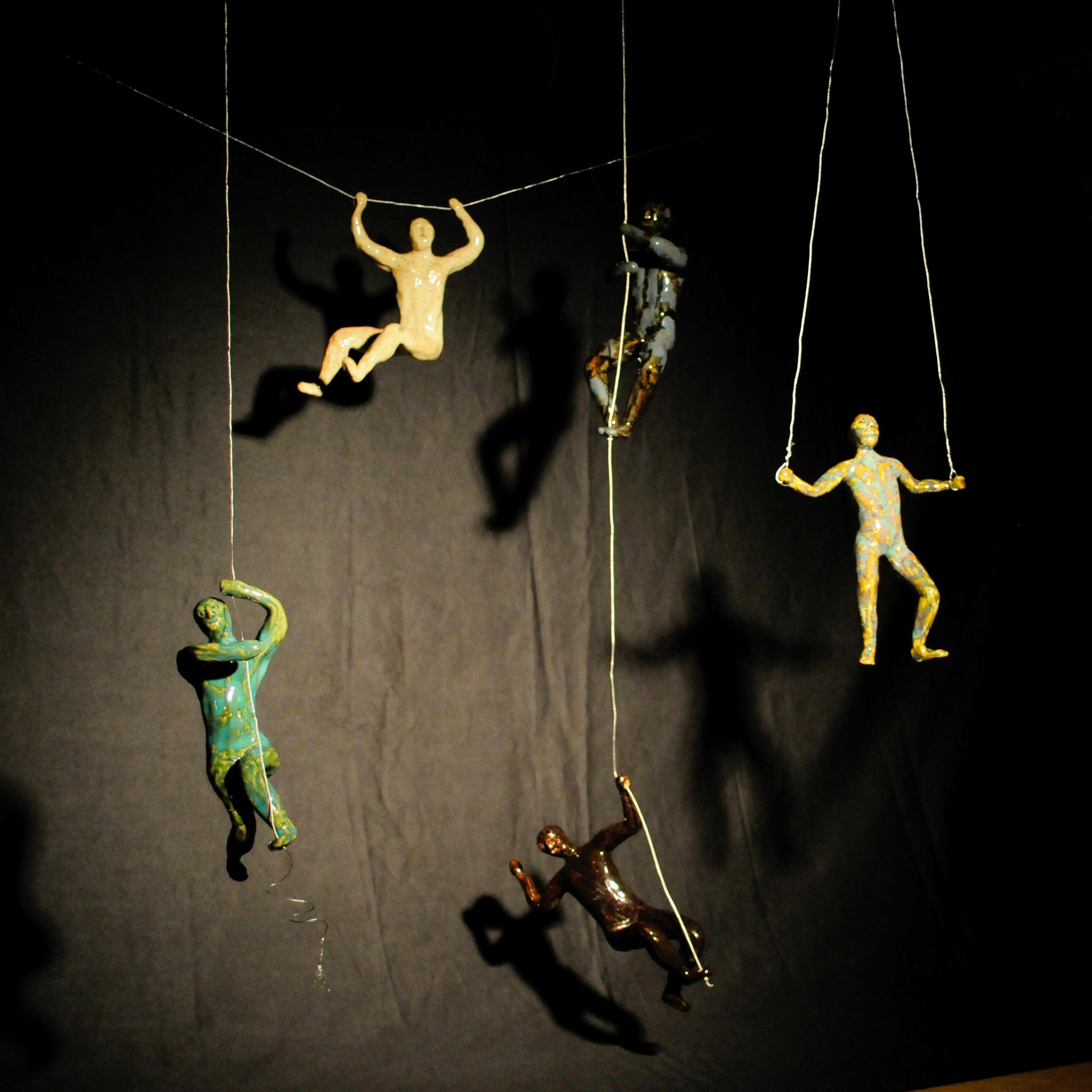 This all started when I sat in on a figure drawing class. I tried making my own clay version of the model and that opened the door for me. From there, I began putting figures on wire, and suddenly they had movement. They bent and leaned and hung in ways that reminded me of how life pushes and pulls us along different paths.