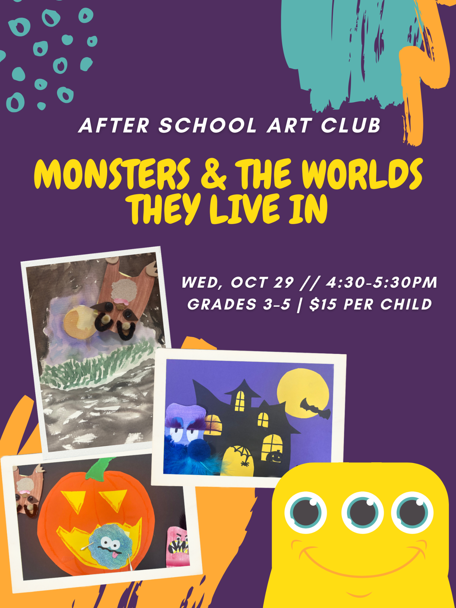 Get ready to make, paint, build, and create! A welcoming, creative space for kids to explore different art materials and techniques. Each session offers two unique projects, encouraging curiosity, problem-solving, and self-expression. No two classes are the same—come to one or join them all. Participants will leave with finished pieces and new skills to build on.