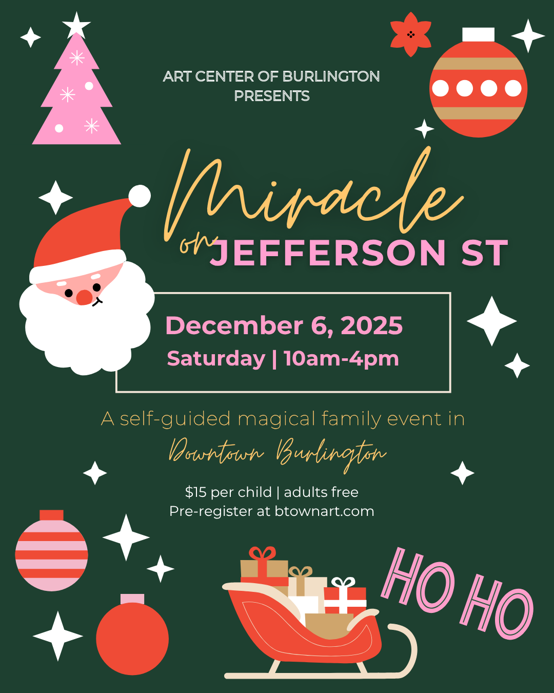 This magical day is a family self-guided event. Begin at the Art Center by picking up your goodie bag anytime after 10am but allow enough time because the fun ends by 4pm. Your family will spend a few hours making small crafts, painting pottery, a special photo backdrop, listening to Christmas stories, watching Christmas movies, and so much more! MOJS is most enjoyed by kids 10 and under.