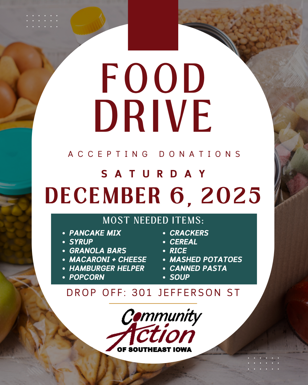 Art Center of Burlington is collecting non-perishable food items to support our neighbors through Community Action of Southeast Iowa.