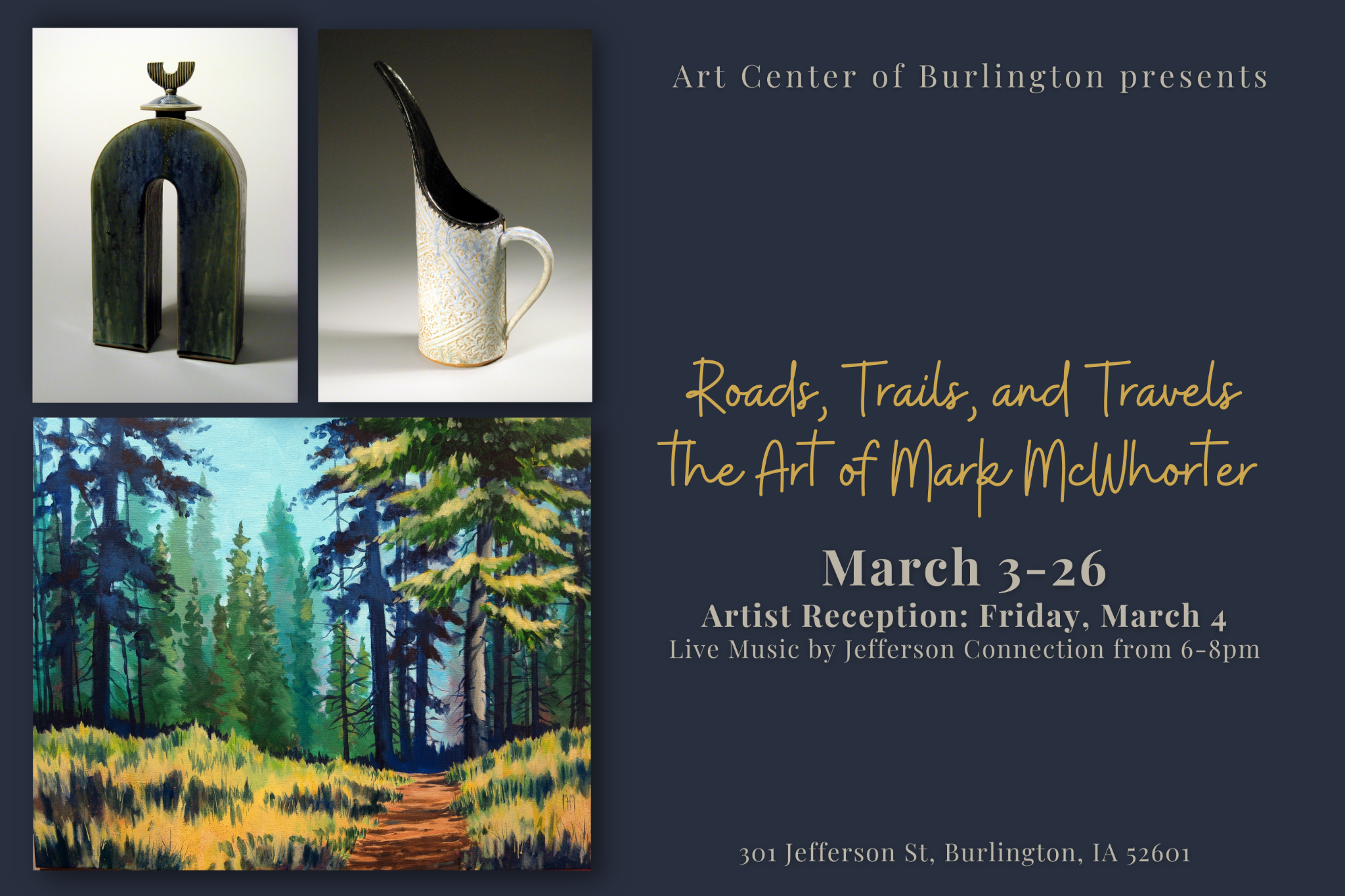 Working comfortably in several different media, his works in clay consist of both traditional and non-traditional utilitarian vessels. Subject matter for his two dimensional works in watercolor or acrylics are usually taken from the rural Iowa landscape, from travels in North and South Carolina, and the Northern Rocky Mountains. “As a Realist, I try to distill what I see down to only those elements that perfectly describe the subject without unnecessary detail and over complicated color.”