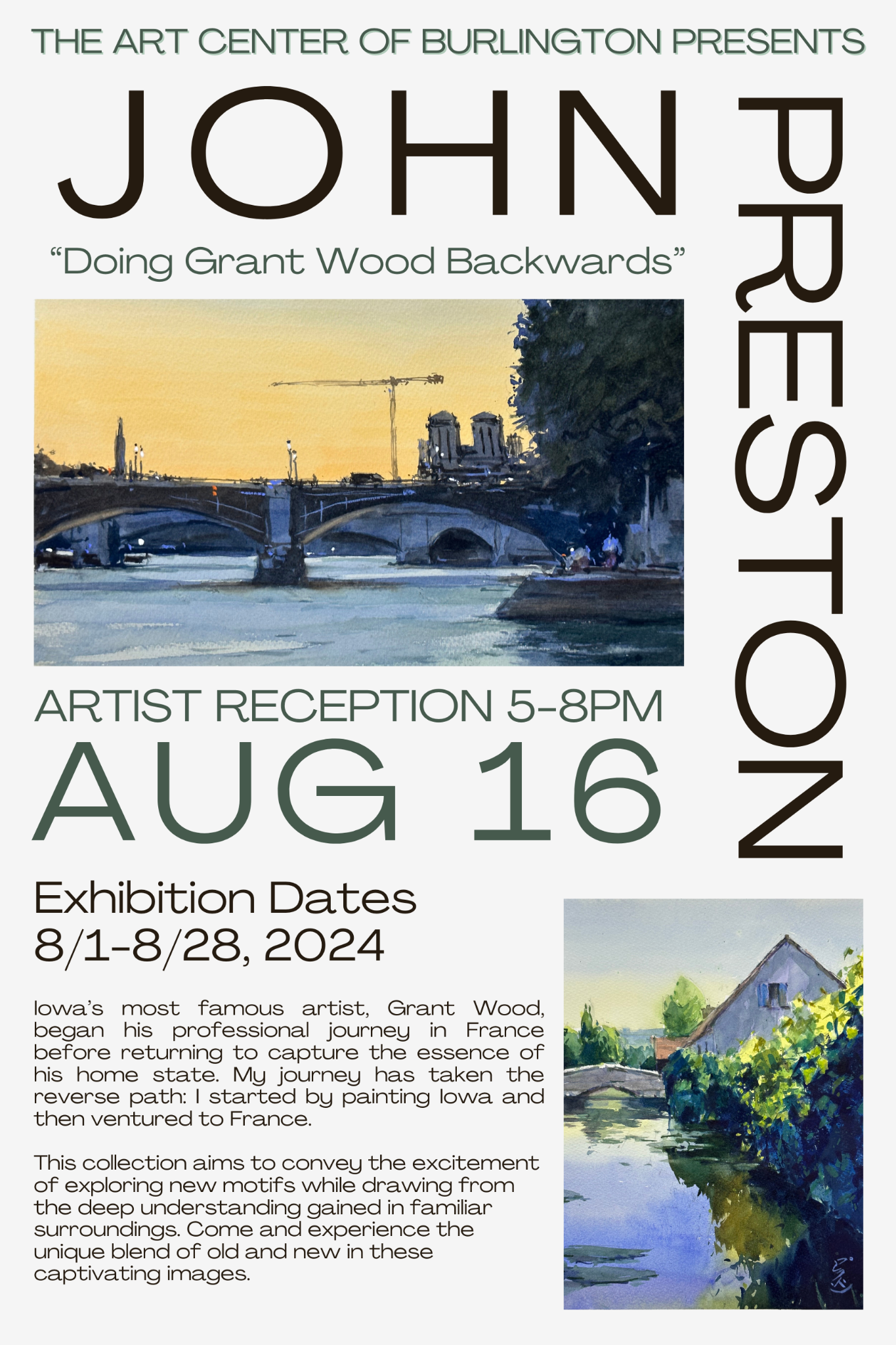 Iowa’s most famous artist, Grant Wood, began his professional journey in France before returning to capture the essence of his home state. My journey has taken the reverse path: I started by painting Iowa and then ventured to France.