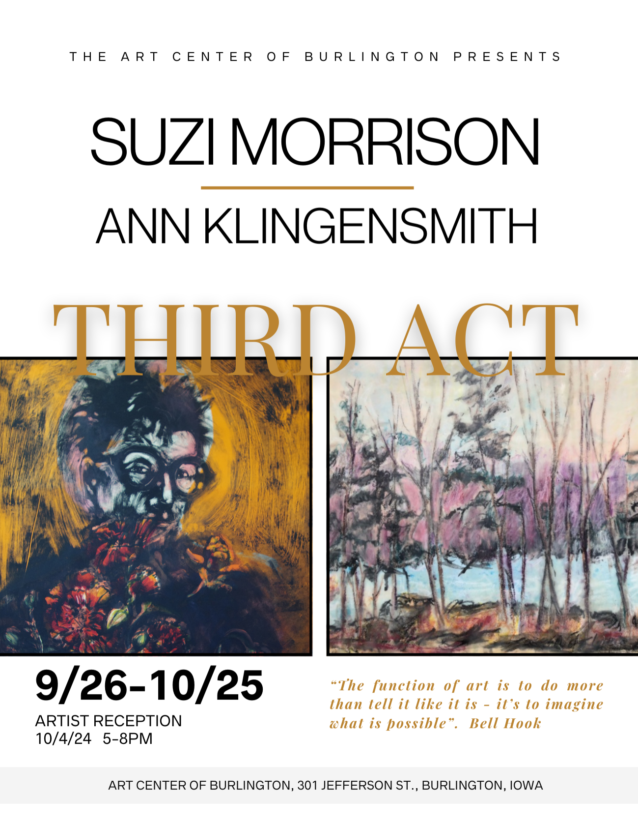 Based on demographic trends we are experiencing more years in our lives. This beyond 60 is often referred to as the “Third Act” and I’m there. I’m at a point where previous big roles that helped identify who I am have changed: daughter, wife, mother, professor of art, and even artist. Many of those roles have shifted and have continued to shift. Being an artist is not something you can separate yourself from but it is something that grows and changes. Sometimes my expectations can make the creation experience stressful - And what it boils down to is, am I good enough?