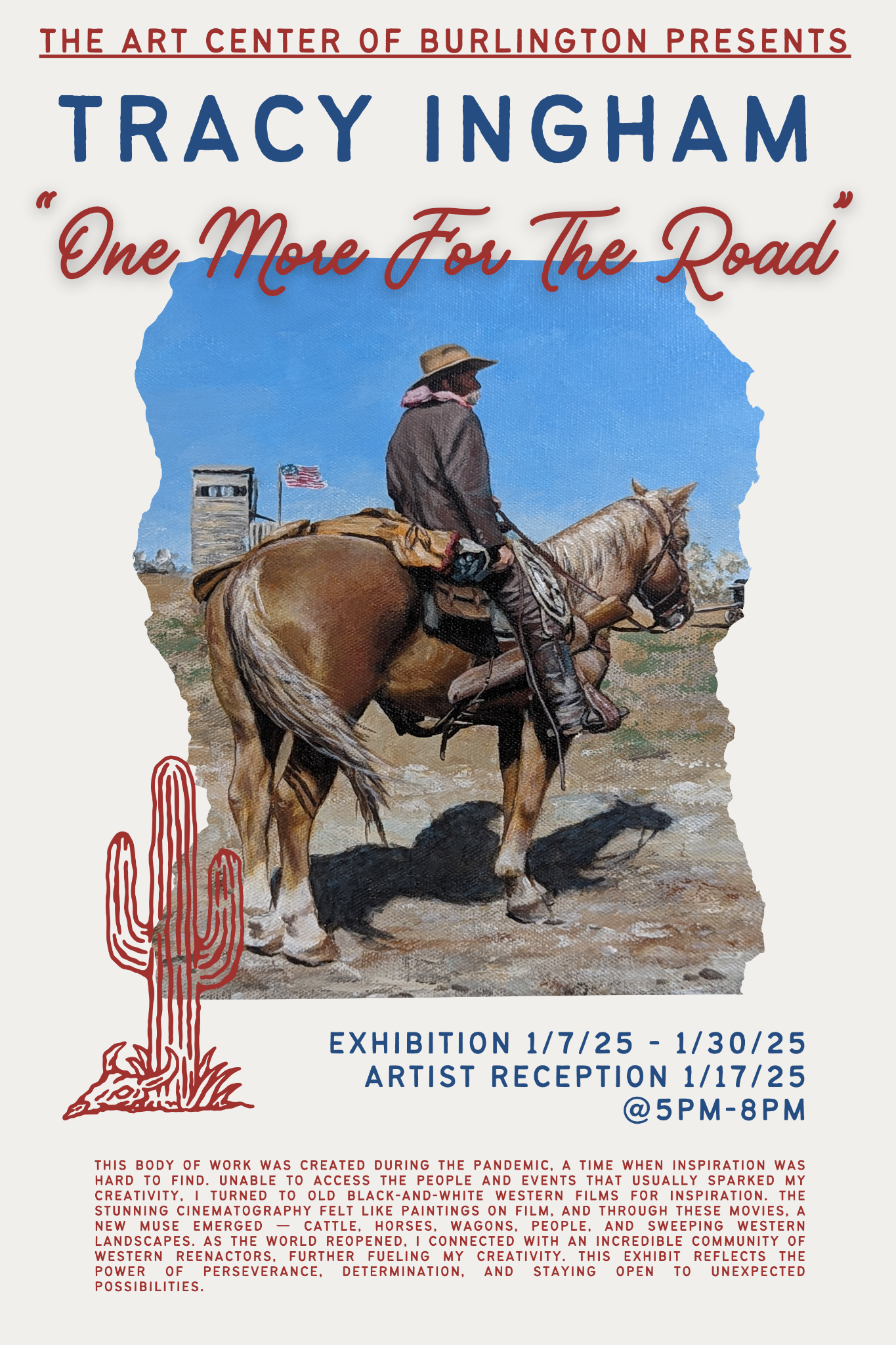 This body of work was created during the pandemic, a time when inspiration was hard to find. Unable to access the people and events that usually sparked my creativity, I turned to old black-and-white Western films for inspiration. The stunning cinematography felt like paintings on film, and through these movies, a new muse emerged — cattle, horses, wagons, people, and sweeping Western landscapes. As the world reopened, I connected with an incredible community of Western reenactors, further fueling my creativity. This exhibit reflects the power of perseverance, determination, and staying open to unexpected possibilities.