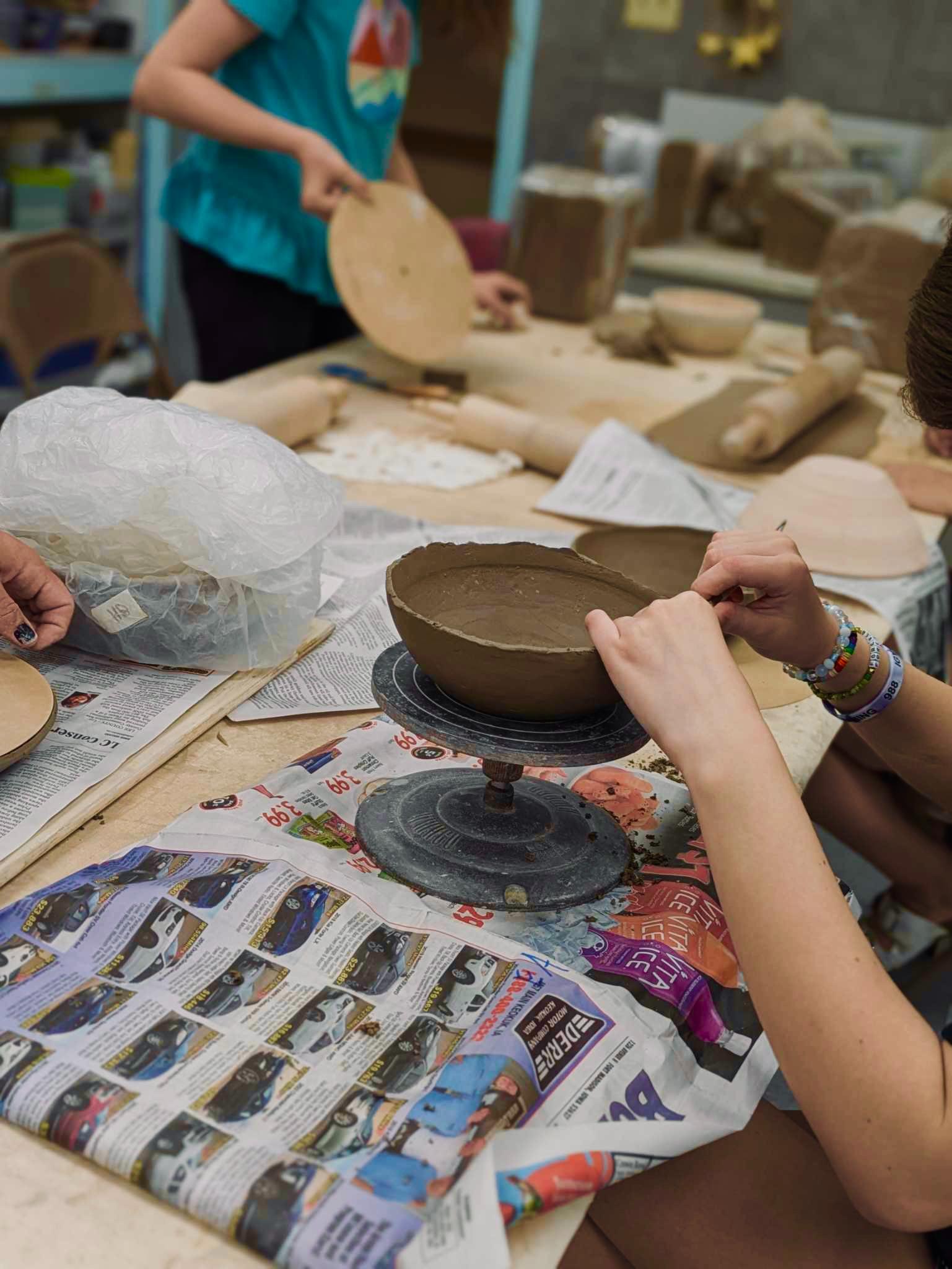 We will create works using 3 different techniques. On day one, we will learn how to make a set of 3 stacking pinch pots, on day two we will learn how to coil build a planter; and on day three we will roll out slabs and create a hanging mobile. All works will be painted and decorated at the end of each class. Work pickup will be two to three weeks after camp concludes.