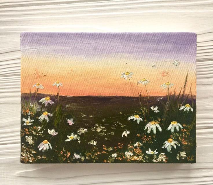 Slow down and enjoy an evening of painting without pressure. In this relaxed acrylic class, you will work on a small 5x7 inch canvas, building a purplish sunset and a field of daisies with simple steps and an easy, slightly abstract style. It is meant to be fun and approachable, whether you are picking up a brush for the first time or just want to paint something cheerful and take it home the same night.