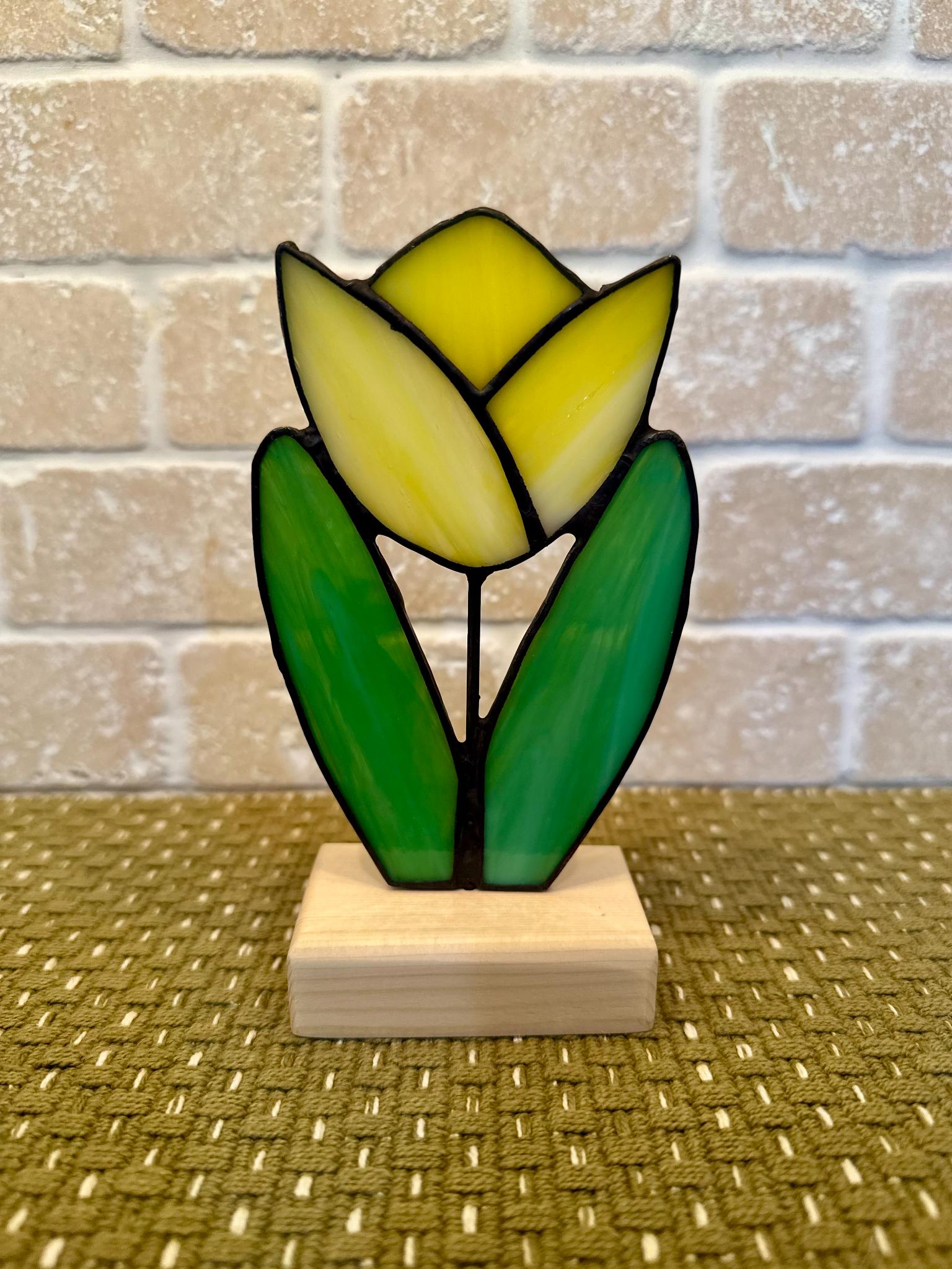 Welcome spring with this stained glass tulip. Participants will cut, grind, foil and solder glass to construct a stained glass tulip that stands in a wooden display base. Prior work in stained glass is helpful, but not required. This class is located on our 2nd floor, participants will need to be able to walk upstairs.