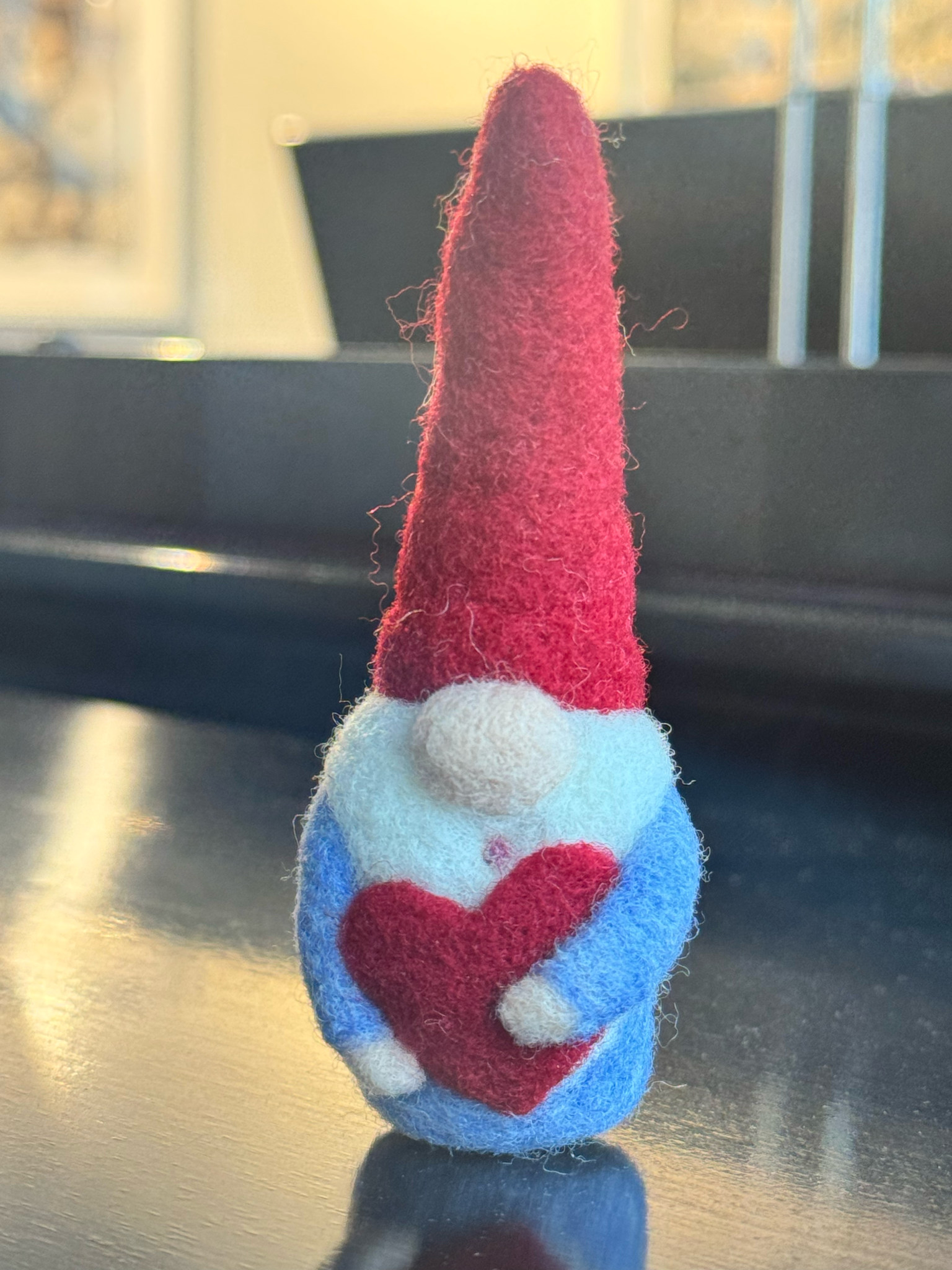Whether you call him a gnome, a tomte, or a nisse, you'll enjoy needle-felting this little guy. He carries a valentine heart and is about 4" tall. Supplies provided and colors will vary. Register by Monday, Jan 26 to ensure a spot and materials.
