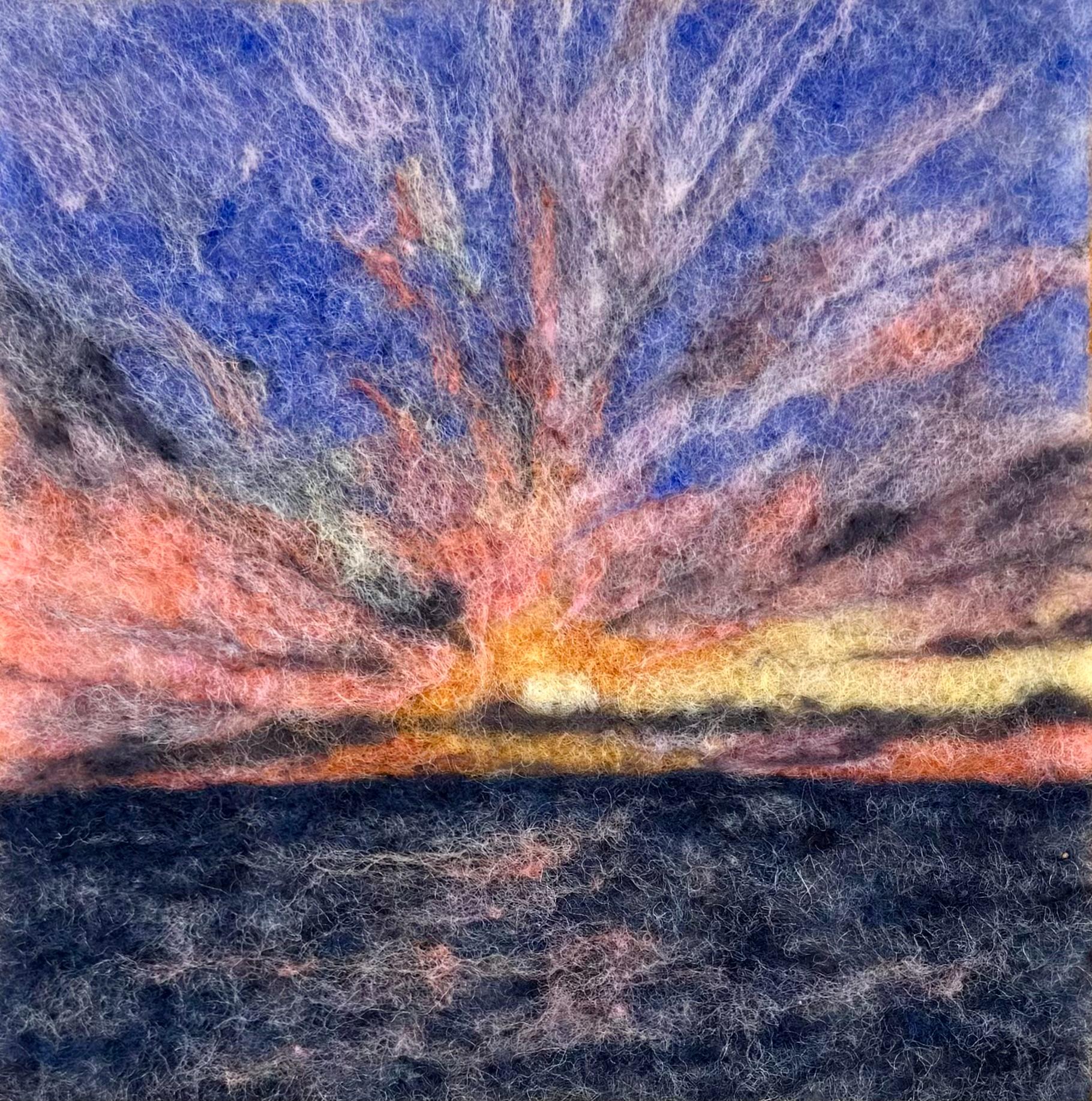 Learn how to make a 5"x5" needle felted sunset from our February featured artist, Susan Cunningham. Kit will include a piece of wool background fabric and wool to create your sunset. Reference photo will be included. Register by Monday, Jan 26 to ensure a spot and materials.
