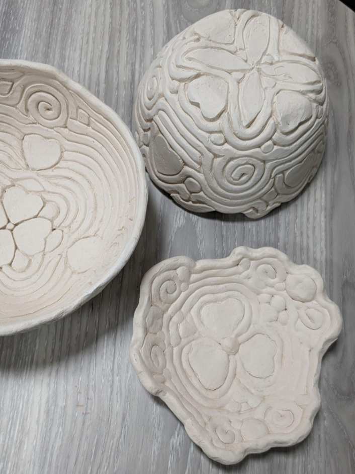 Create a decorative hanging mobile of any theme you choose. Create a top piece and 6-8 charms to hang. We will roll and cut slabs, paint, and make holes. Once fired, students will get the pieces back with twine and be expected to tie the pieces together after pickup.