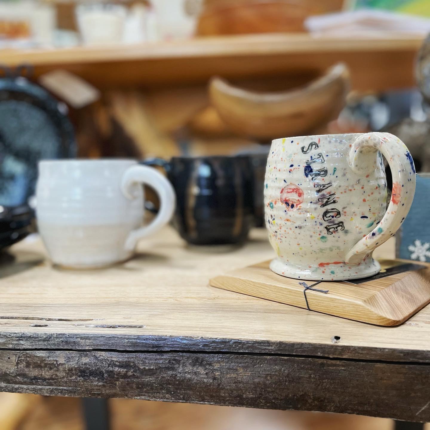 Wheel Thrown mugs take time management. Each mug takes a potter hours to create. In this 3 part class, aim to create 2 mugs. First class, learn how to throw a mug shape (twice). Second class trim, pull handles and learn some altering/decorative techniques. Third class, learn some glazing skills.