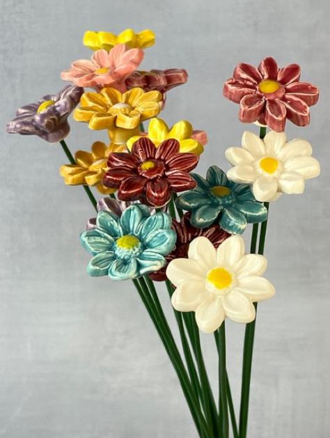 Share a creative experience together. In this class, participants will hand-build a dozen ceramic flowers to create a lasting bouquet. This class is perfect for moms and teens or adult kids, or anyone who wants to spend time making something special together.
