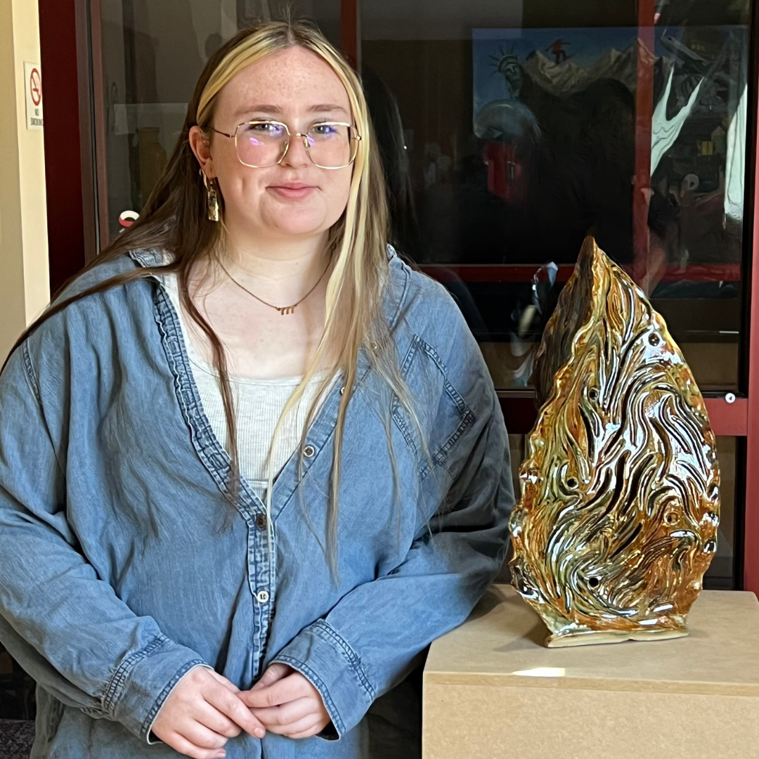 A recent SCC grad, Kylee is already deep into the world of clay and glazing. She's spent the last two years under the guidance of John Bybee, experimenting with materials and textures—and loving every minute of it. She’s now setting her sights on a ceramics degree to keep chasing that creative spark.